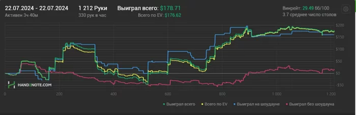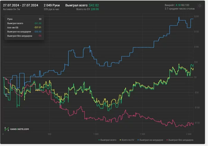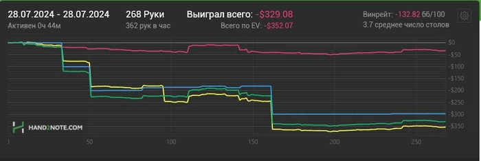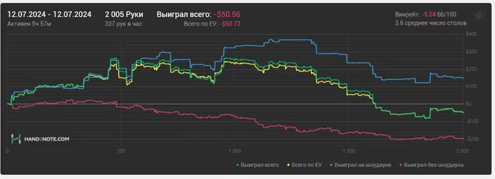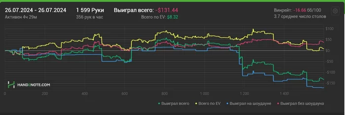 Словил легкий кризис от ожидания показать вменяемый уровень почасовки, хороший рез для уверенности и просто желание доказать себе и всем, что я могу. Мое Эго начало меня съедать, конец месяца - давить, а диспа - ебать. Уже как 20к рук я играю в 0. Вроде ничего, но меньше всего хотелось бы получить такой отрезок во время этого марафона. Но что имеем, то имеем.