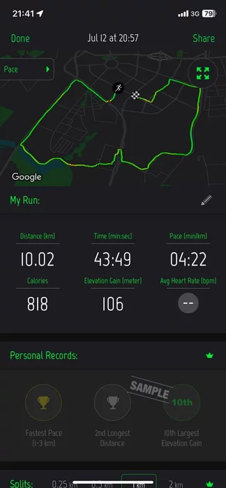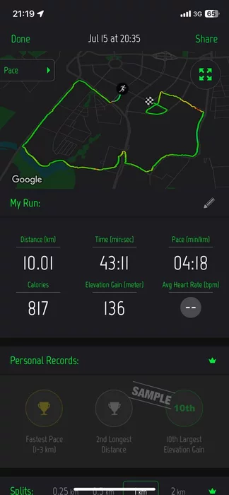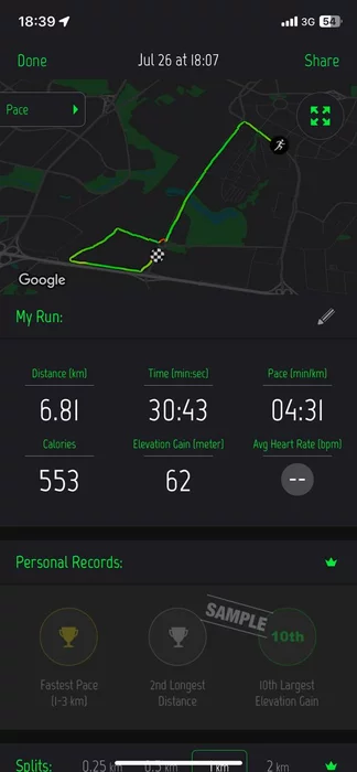 Cам бег (случайно завершил пробежку на светофоре, пока клацал что-то в телефоне, поэтому в два захода пришлось сохранять):
