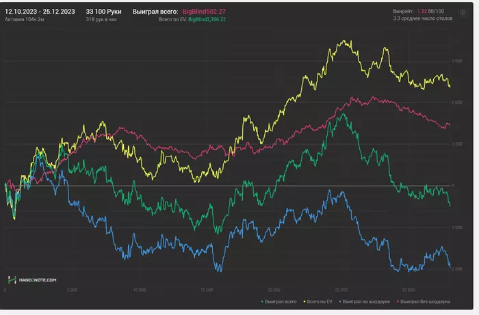 Ну а в целом вроде как по графику ты по ев бьёшь нл100. Ну в чём проблема тогда, играй дальше. Тем более у тебя какая-то уж совсем маленькая дистанция. Я за месяц в приложухах наигрываю столько же/или больше, при этом играю повыше. И я не играю со всеми подряд, то есть селекчу, то есть игра есть. Дистанции можно выкатывать. Правда для этого беккер должен предоставлять много комнат/приложений, а иначе не отыграть много.