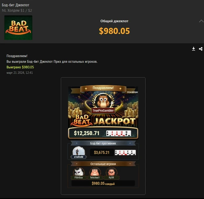 Результаты покерные: