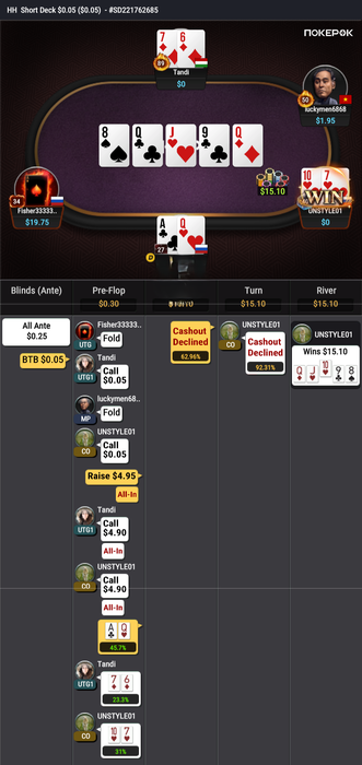 Если вы думаете что это единичные раздачи, то я вам так скажу. По всем никам, которые я привел, у меня история на несколько месяцев, где в каждой сессии такие раздачи. Там уже комменты некуда писать. Это железобетонная нечестная игра со стороны рума.