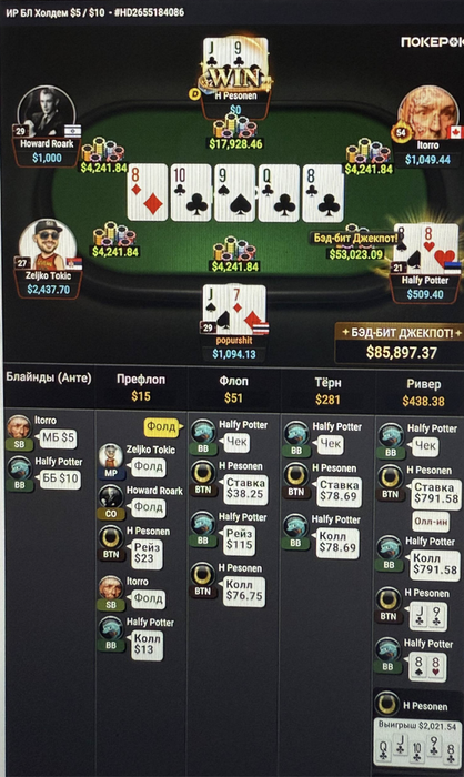 я с июня месяца катал очень мало. Покер у меня по настроению, я знаю, что он со мной на всю жизнь) даже когда мне будет 50 лет, я буду в него иногда играть.Представляю где-нибудь игру в Монако на лимитах по 100-200к долларов. Вот хочу такого чувства, чтобы бабки не давили, потому что есть банкрол, а самое важное, есть уверенность в своей стратегии и понимании игры. Поэтому я катаю онлайн. А оффлайн покер будет реально запоминающимся событием.