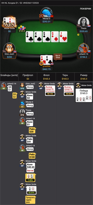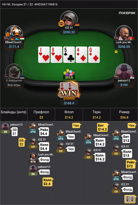 считаю, что реальный винрейт в покере не на префлопе АА КК и тд, а на выигранных с десяток раздач в подобных ситуациях против фишей