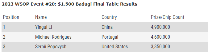 Во-первых, в 3-максе Бадуги за браслет поборется украинец Сергей Попович, участник многих серий RPT и GipsyTeam. Ранее был не замечен в попаданиях в деньги в лимитных играх в оффлайне, а тут сразу финалка новинки WSOP!