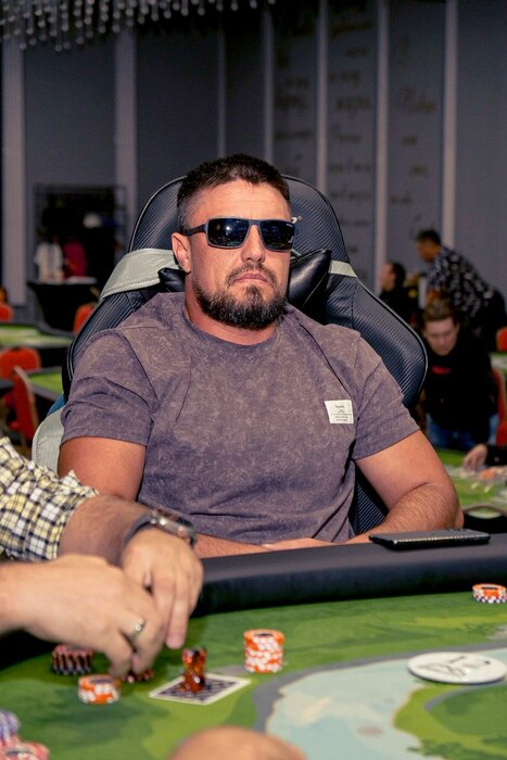 Флоп: - Валерий бет 800к (за спиной осталось 2.3м), Андрей - колл. Игорь запушил (~8м). Оппоненты заколировали.