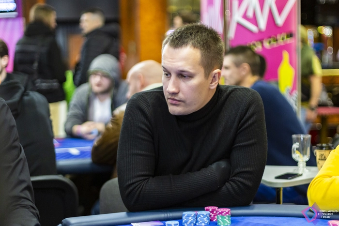 За соседним столом в это же время состоялся префлоп олл-ин между Ильей Роговым и Евгением Кузньминым. Кузьмин ехал сверху с против и даже флопнул две пары, но Рогов терном доехал во флеш.