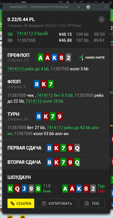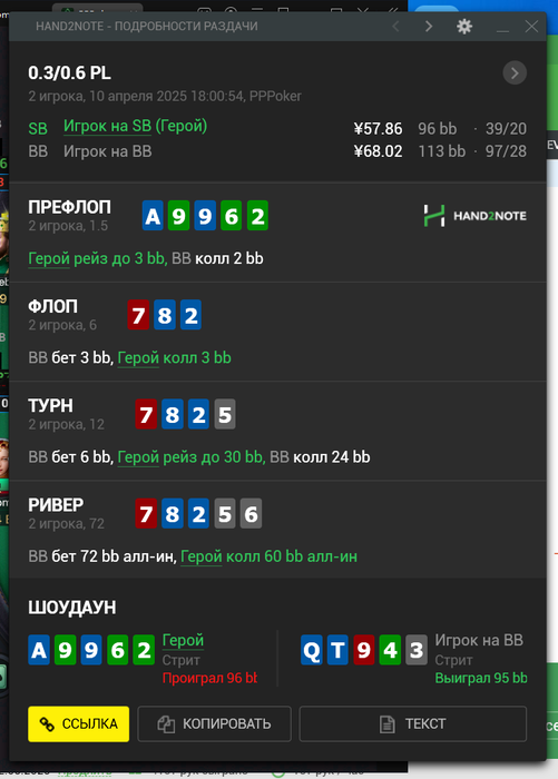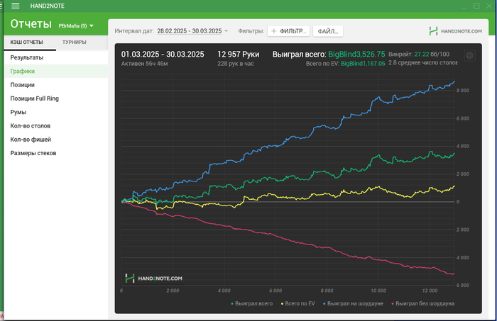 1. Хочу сделать софт для анализа захода. В 5-карточной омахи часто кажется, что тебе тупо не везёт. Но это «не заходит» может быть иллюзией: карты норм, просто доски не совпадают. Поэтому я решил выгружать хэндхистори и смотреть, что мне реально приходило. Сколько там пар, double-suited, играбельных рук, сколько трэша. Теперь у меня есть скрипт: он считает масти, структуру, пары, оценивает силу стартовых рук — я “скармливаю” его нейросети, она даёт вердикт. Хочу допилить это до отдельной софтины. А может, это вообще надо прикрутить к H2N. ❓Вы бы пользовались таким инструментом? Или я зря себя успокаиваю цифрами?