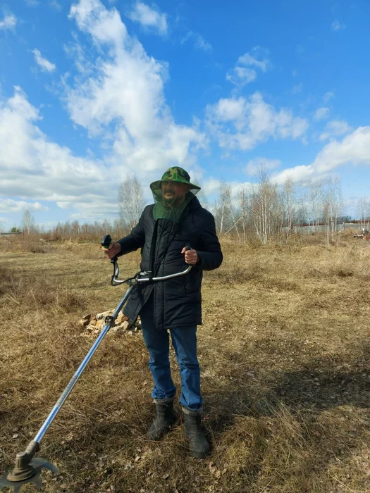 Открыл сезон полевых работ. Косил траву — сам, впервые в жизни. Купил бензотример, завёл с первого раза (что уже победа). За 8 часов трава испарилась, осталась гордость и запах бензина.