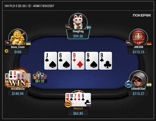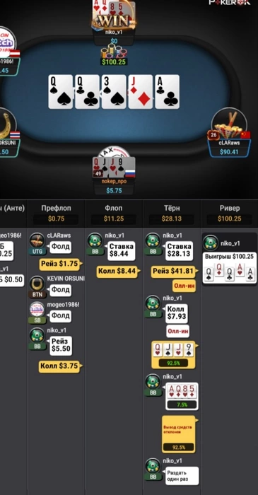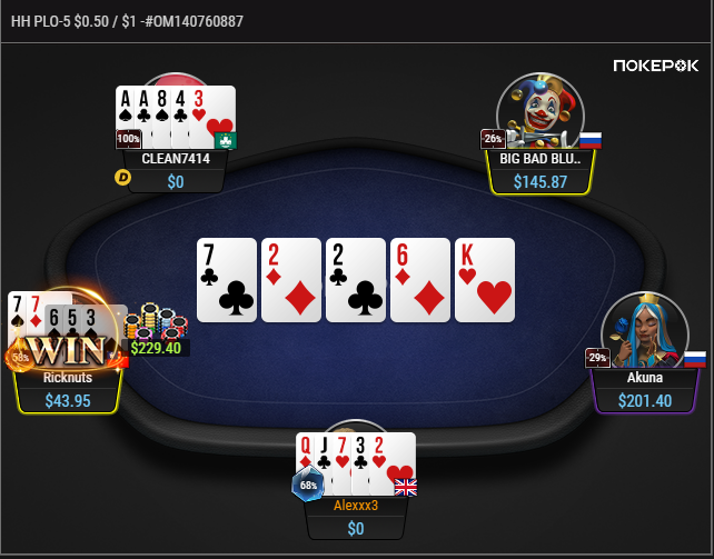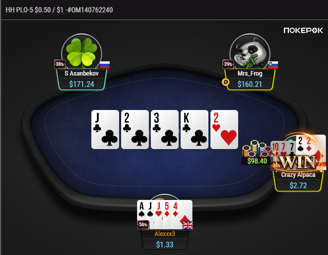 2. Аналогично. Хотя, тут уже интересная раздача, жаль хода раздачи нет, только итог.