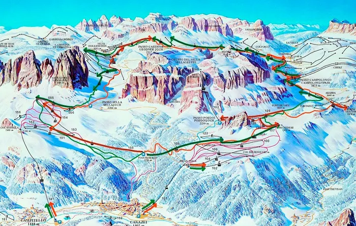 Короче если честно я не лыжник, а бордист... Всю шмотку привёз с собой, борд решил не брать, потому что в падлу с ним носиться. Взял на прокат (3 дня =75 евро). В общем сегодня решил катнуть, выехал на гору, всё идет хорошо и хуяк у меня крепление на борде само повернулось градусов на 20, я торможу... поломка... пиздец я на горе "а лыжи не едут", в Итальянских Альпах есть такой прикол, как горнолыжный район Селла-Ронда который представляет собой замкнутый круговой маршрут, огибающий одноименный горный массив, пройти который в обоих направлениях позволяет цепь связанных между собой многочисленных канатных дорог и трасс общей протяженностью около 500 км. То есть вы даже не представляете масштаб этого курорта....