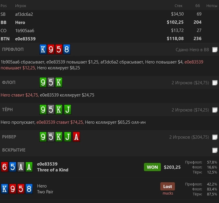 3. Ну и мои любимые, из разряда выставлений по флопу: а-ля, ну я же блочу..😆. Слушать надо было директора фонда "Йобанный сыр", г-на Алталио: "В покере блокеры не работают".