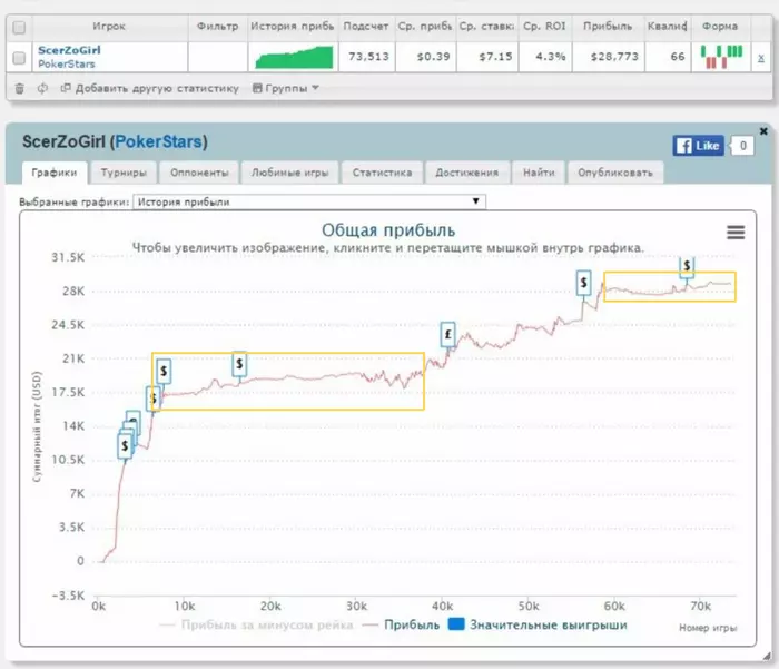 В покер я ворвалась очень бодро и крушила все и всех на своем пути без каких-либо сверх усилий и это заставило меня переоценить свои навыки, способности, в целом свой подход к игре и работе над игрой. Результат на графике 😑