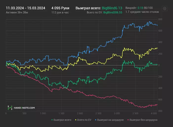 Где-то в начале блога есть мой график предыдущего покерного опыта, больше чем десятилетней давности. Я сегодня могу немного странно изъясняться, потому что мало спала, а последняя сессия длилась 12+ часов, но, надеюсь, вы меня поймете 🙃