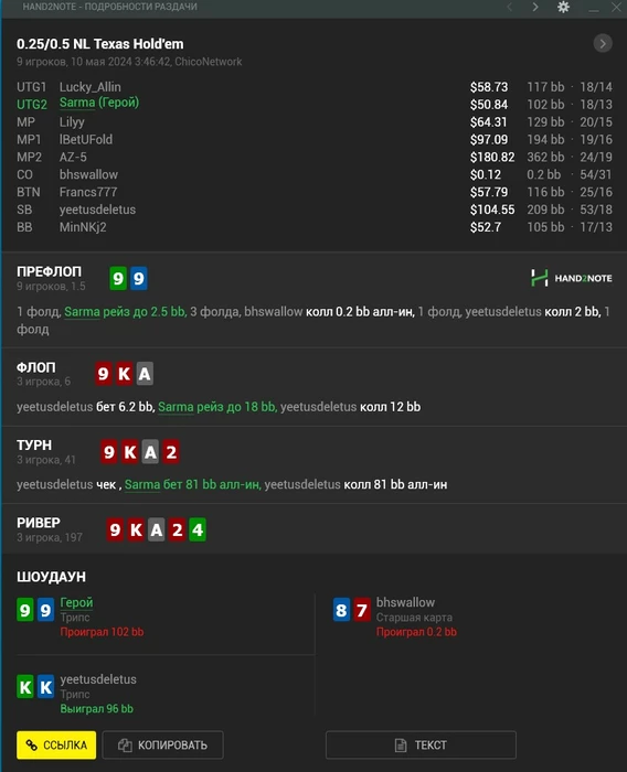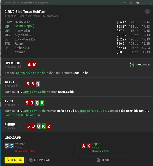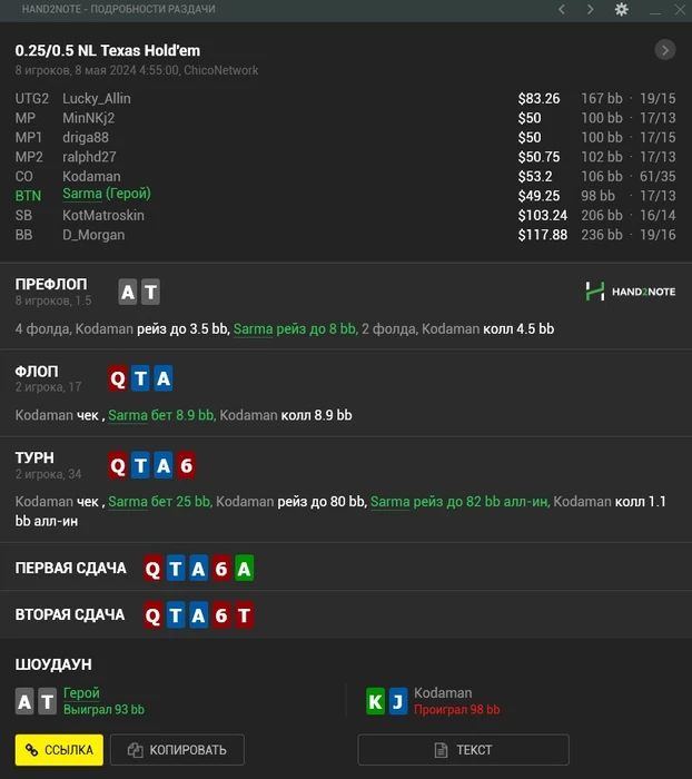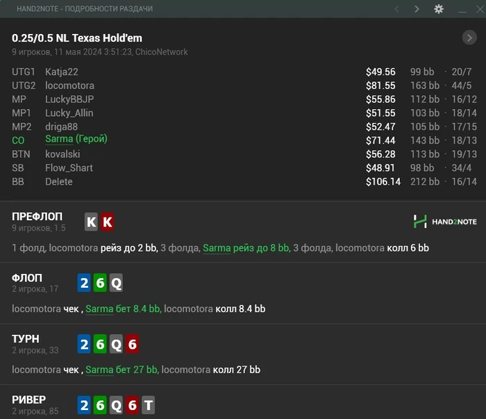 мои мысли на ривере, давай у тебя KQs))и жаль что не пришел К)