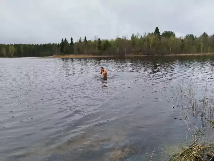 Потом мороз и снег-но я все равно сходил поплавал-промок-замерз-и бегом домой печку топить))