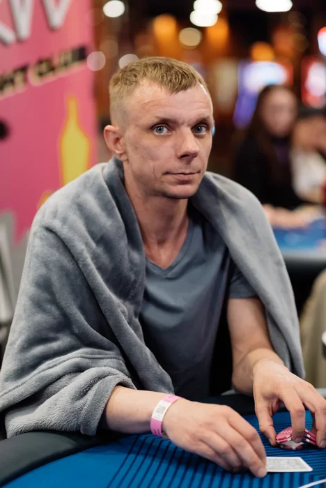 Сразу после перерыва теряем Виталия Могилевского. Задвинул олл-ин из средней на стек около 6бб. С BU свой олл-ин поставил Игорь Коротков. Виталий показал , Игорь — .