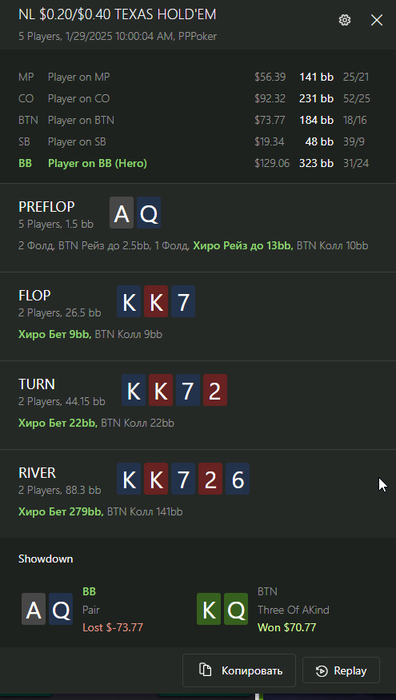 Kyka, ну понятно, что если К отбил, то блеф херовый.