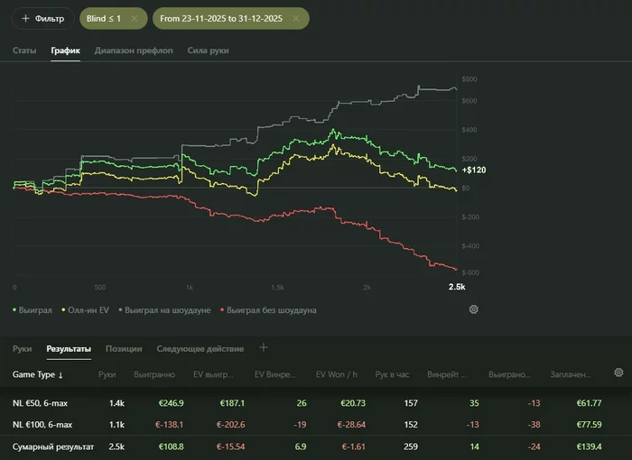 По верхним лимитам картина маслом. Зато я получил колоссальный опыт почти в 80к раздач! И определённо видно, что мне точно есть куда расти (привет ёлочкам ). При этом всё равно удалось набить ролл и сделать основную загрузку к концу года из онли 200+ лимитов по всем румам. Теперь нужно научиться на них плюсовать.
