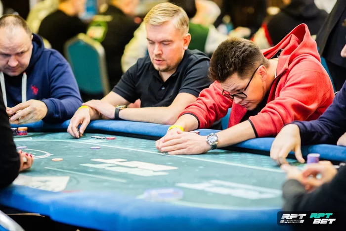 Дмитрий Боев из середины открылся 135к (под олл-ин Олексину). Виталий ныряет в раздачу. Следом коллом зашли Александр Бирюков, Александр Каратеев и Руслан Османов.