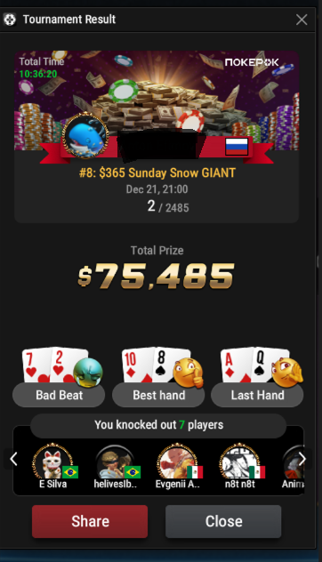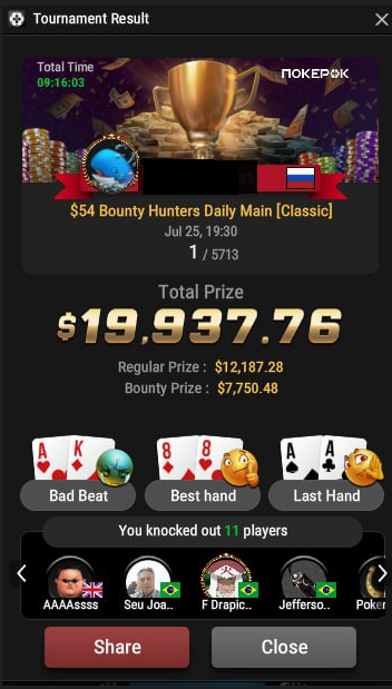 Взял 5 часовой пакет тренировок МТТ у Игоря и получил огромную порцию новых стратегий и эксплойтов.Информации очень много внедряю всё постепенно и уже есть кое-какие промежуточные результаты:1)Увеличилось EV в поздних и чип ев стадиях,а также начал катать красную линию в небольшой плюс,хоть наигрыш пока что маленький,но чувствую что стратегии действительно рабочие.Раньше красную катал с винрейтом -10ББ/100 при общем ЕВ +10ББ/100.В перспективе планирую ещё брать тренировки,но пока материала для изучения и проработки предостаточно.