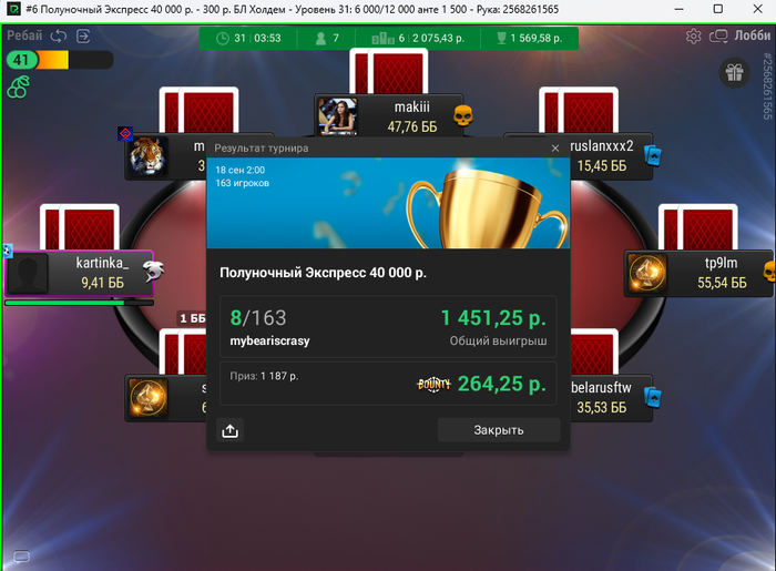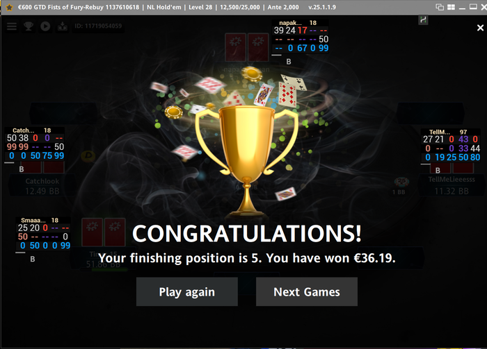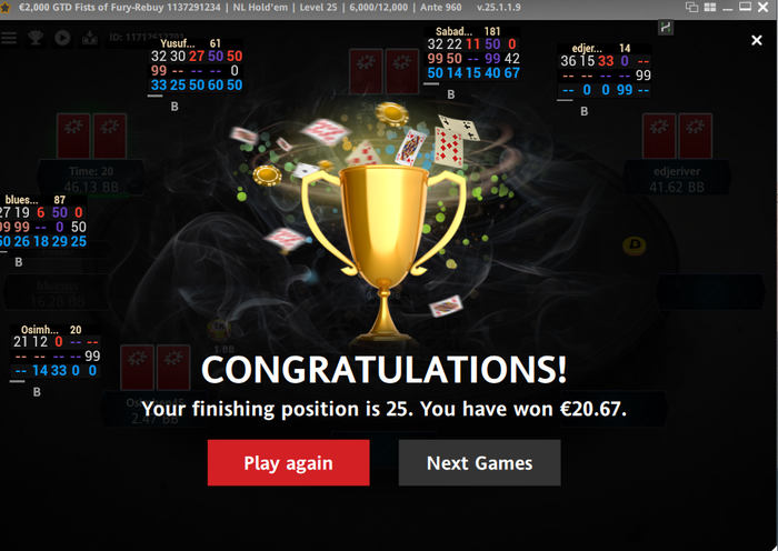 На момент публикации данного поста я сыграл уже 11 турниров.