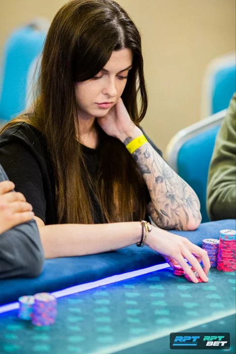 Инна Шептунова (250к, utg+2) открылась 12к, Дмитрий Хвидченя (360к, LJ) озвучил 3бет 35к. Инна поставила 4бет 65к и выиграла эту раздачу.