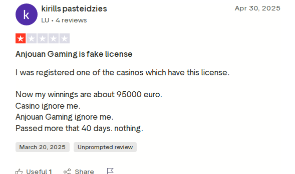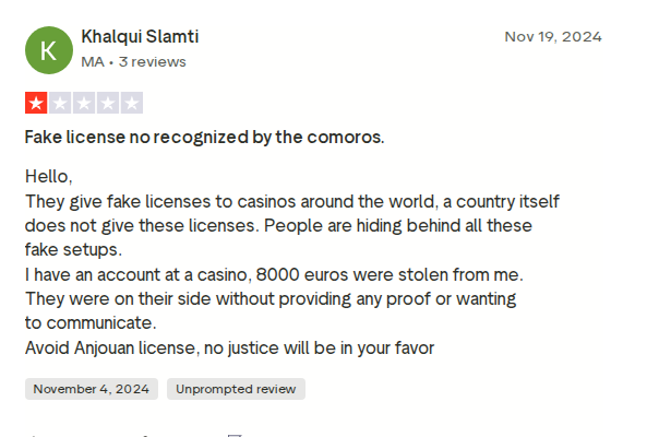 "Anjouan license doesn't mean anything and in fact is bottom tier casino licensing."