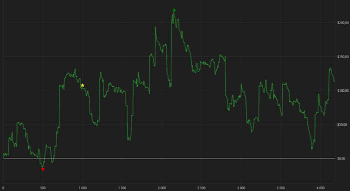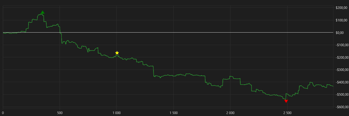 В финансовом плане результат получился скромным — дисперсия показала себя во всей красе. График прикрепляю к посту, на нем всё видно. Расписывать кулеры или переборы не имеет смысла — это сугубо математические издержки дистанции и мультитейблинга.
