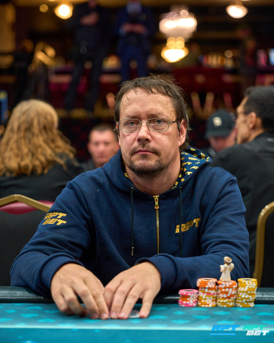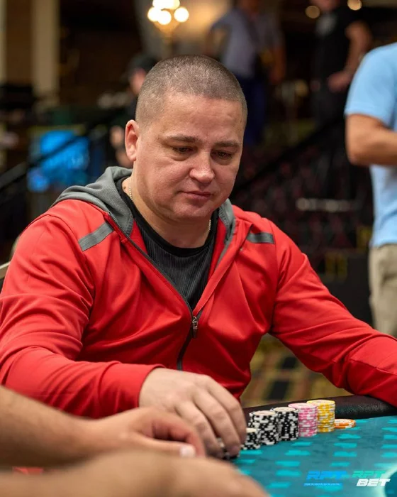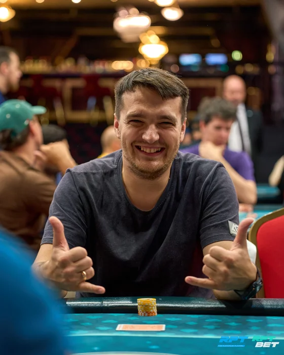 Артем Мишнев (534К) со второго утюга открылся 24К, колл от Игоря Прощенко (558К) с большого блайнда.