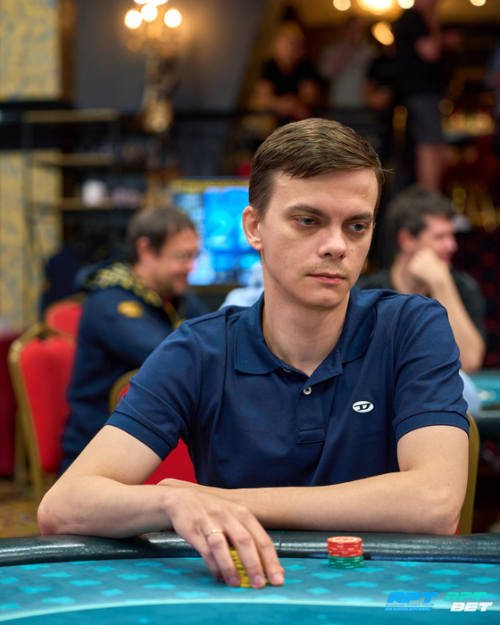 Терн-ривер бланки и Денис покидает турнир на 13-м месте, забирая 620 у.е. Спасибо за игру! Ранее выступление в турнире завершил на 14-м месте Антон Бобров, который начинал финальный день с самым коротким стэком, и он забирает 560 у.е. Благодарим за игру!