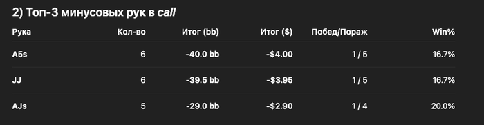 Временно решаю убрать A5s и ниже из колла и мелкие карманки из пуша в ранних позах. Попутно просим подготовить три лучшие руки по пушу и коллу, которые сыграли больше пяти раз.