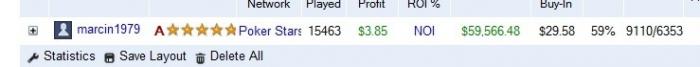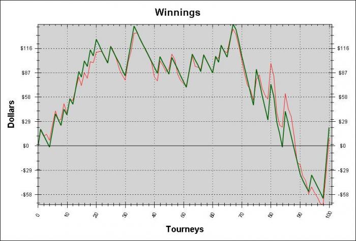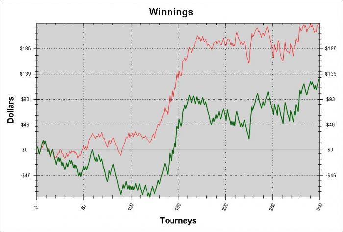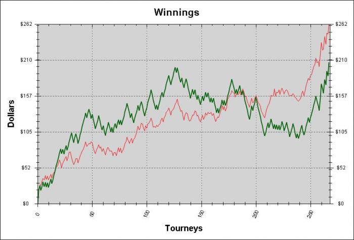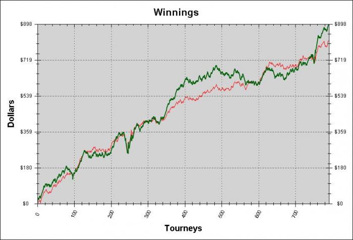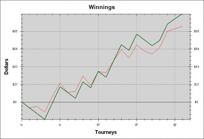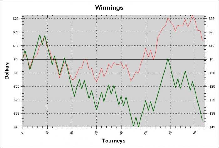 У меня первые 600 турниров в ноль на старзах. А за следующие 500 почти 100 байинов плюсанул. В айпокере где-то за турниров 300 с чем то в небольшой минус сейчас. На фуллтильте за 1600 турниров плюс 150 байинов было. Просто надо хотя бы от 1000 турниров отталкиваться. Тогда уже можно смотреть бьешь поле или нет.