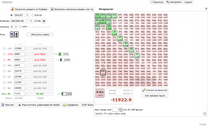 Hero (UTG+2): 6,9849 players post ante of 80, SB posts SB 400,