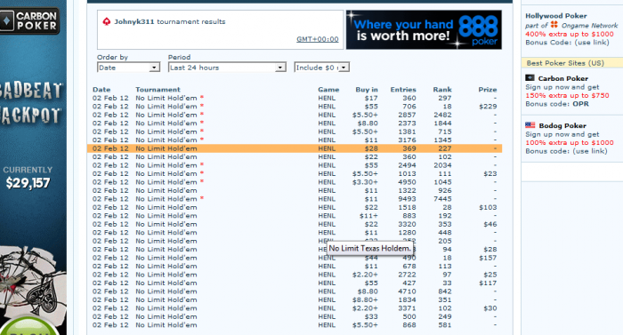 Итак, отыграл вчера первую сессию в февралe, которая оставила неоднозначные впечатления, с одной стороны день не в минус, а даже в микро плюс (+$150), с другой, куча глубоких проходов, а хорошего рез-та так и не вышло из 28 турниров было аж 9 ИТМ, ну и скрин с недоездами...
