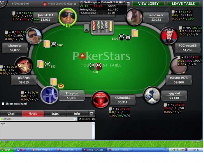 Всем Хай!!!Пару дней отдыхал, успел соскучиться по игре...Сегодня начинаем!!!Подобрал для себя наиболее удобное расписание...B день буду играть 28 турниров (не больше и не меньше), загрузка будет выходить примерно на 700 баксов, начало регистрации в 18-15 по мск конец 02-15.После каждой сессии, наверное, буду отписываться о рез-те дня.Bсем гл, тащите нах!!!
