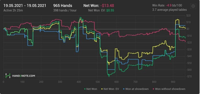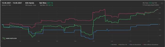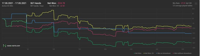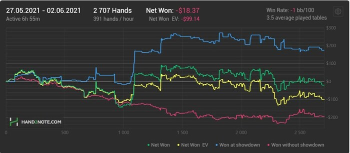 Есть риск, что мог перенести некоторые из своих изменений страты для HU SRP потов в 3bet или 3way, где они не совсем не к месту. Пройдусь по этим банкам и проверю, не перебарщиваю ли где-то.
