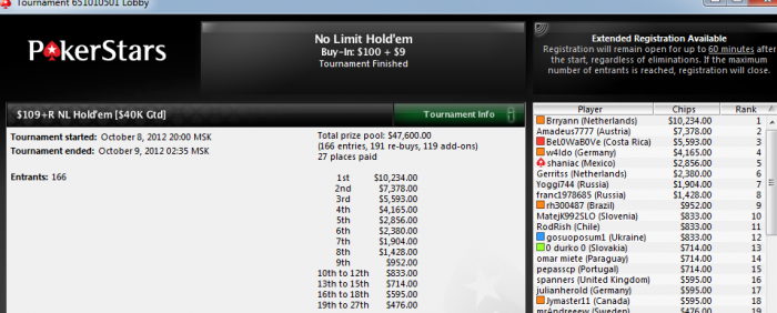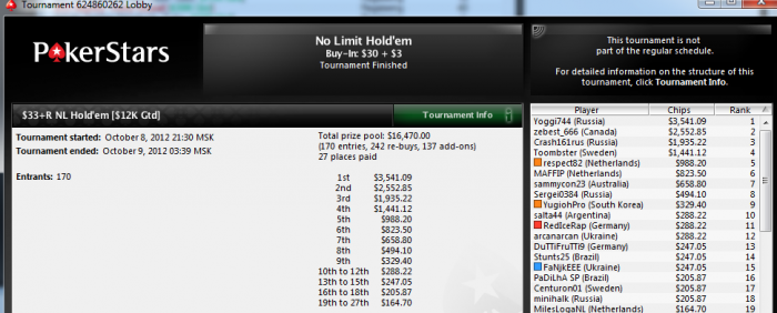 Шел в топ-5 сразу после ребай периода, и ниже ни разу не опускался вроде. На финалке по правде говоря очень везло, сначала прошли все блеф 3-4беты, а потом зашло примерно 6-7 премиум рук подряд)