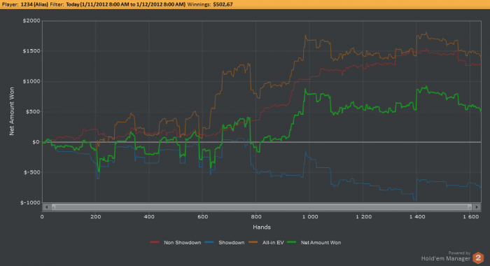 Вчера катал офф уже в Киеве. Несмотря на то,что как оказалось стол у нас был из регов ,которые собрались под москвичей - ни одного хорошнго игрока не было. Играли не дорогую игру. Я сыграл в небольшой минус ,но только из за невероятного невезения в выставлениях.