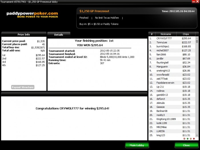 опять немножко не свезло и стол жесткий попался,проиграл победителю турика 66 в дд парень машина статы в районе 60\50,через раз показывал пары,а в те разы когда рейзил без пар ловил трипсы