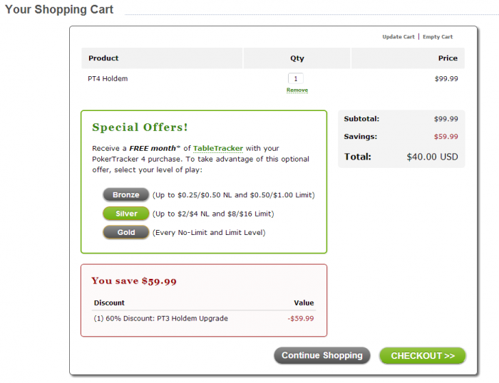 Игроки, купившие PokerTracker после 11 июня 2011 года, получат новый PT4 бесплатно, а остальные обладатели лицензионного PT3 смогут до 25 ноября 2012 воспользоваться 70% скидкой.