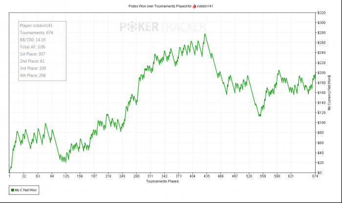 PokerStars - $6.71+$0.29|10/20 NL (2 max) - Holdem - 2 playersHand converted by PokerTracker 4BB: 721 (VPIP: 72.73, PFR: 41.82, 3Bet Preflop: 4.00, Hands: 61)