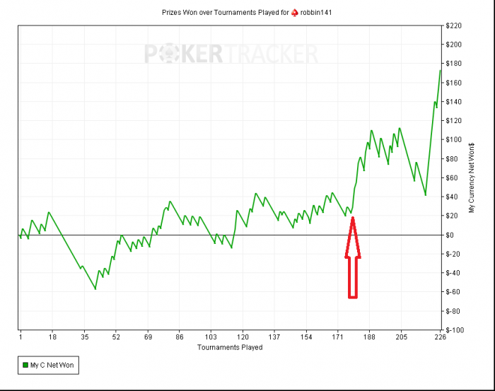 PokerStars - $6.71+$0.29|10/20 NL (2 max) - Holdem - 2 playersHand converted by PokerTracker 4BB: 1,319 (VPIP: 67.78, PFR: 43.33, 3Bet Preflop: 15.38, Hands: 101)