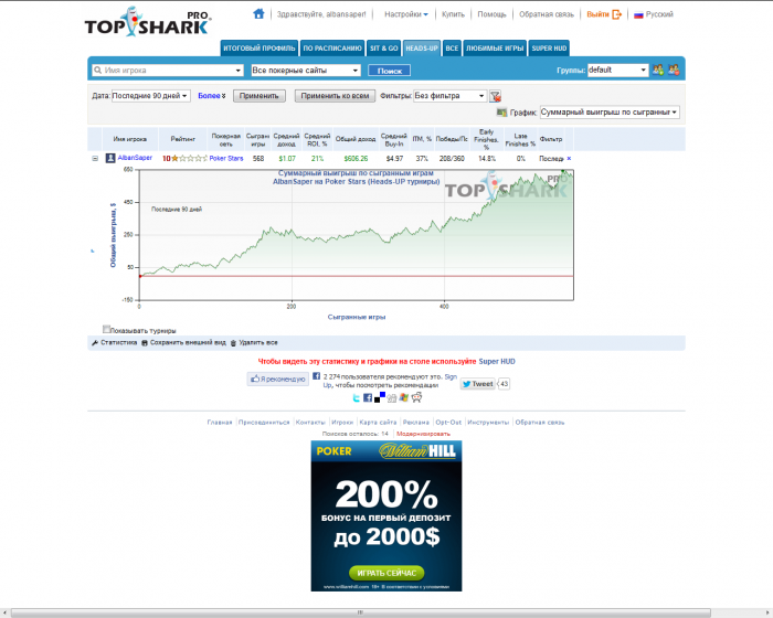 Последние два с половиной месяца играл в основном ХА и иногда минусово лудоманил в МТТ. С момента создания дневника раскрутился с 50$ до 560$