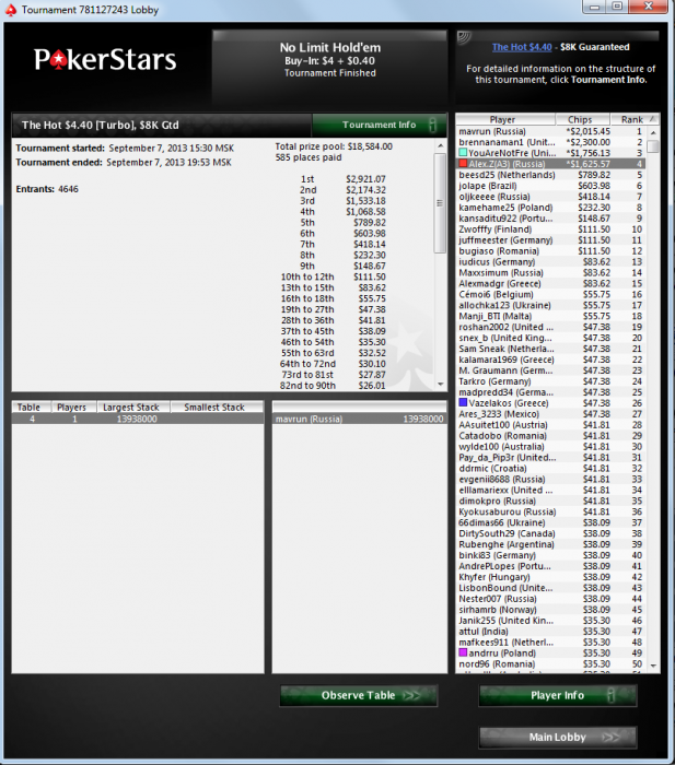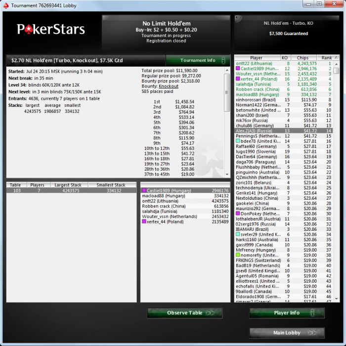 Сыграл 68 туриков по 2.5, 7 финалок 2ое три 3 5ое ит.д без первых мест одно радует хоть начинает отпускать потихонечку) +115$ сыграл профит сессии +115$ Общий профит +5895$ Всего турниров 5038