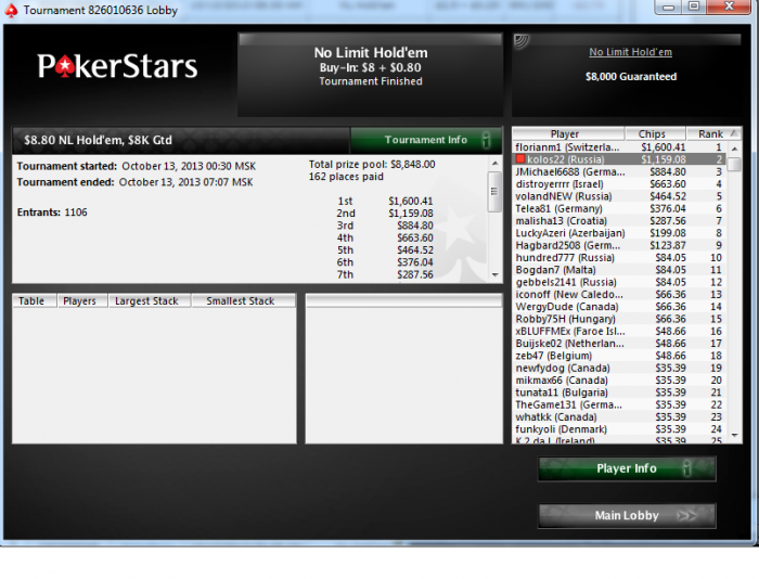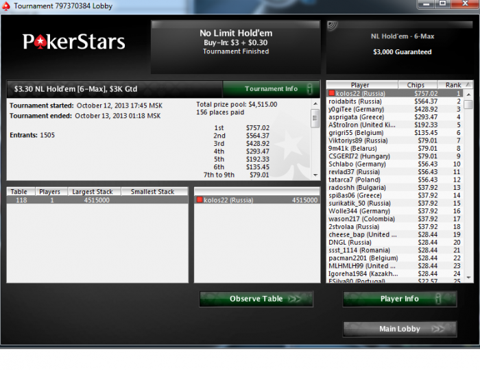 Думаю внести мтт к более менее регулярной катке,в сб и пн можно играть,на след.дни не надо в универ)Посмотрел по шарку,в последнюю сессию сыграл ~250 игр с аби ~16$,то есть я опять 2 раза прогрузил бр и в какой то момент он был 400$,хз как с этим бороться когда столько турниров и плюсовых сателлитов и снгшек на 180, тел в которых я комфортно себя чувствую)Повезло и бр щас >3000$. Вроде и поставил ограничения на турики до 17$ и снг до 15 включительно,но все равно прогружаю весь бр,надеюсь я его набью быстрее,чем залью,короче главное не залиться,того же желаю соратнику по цеху)