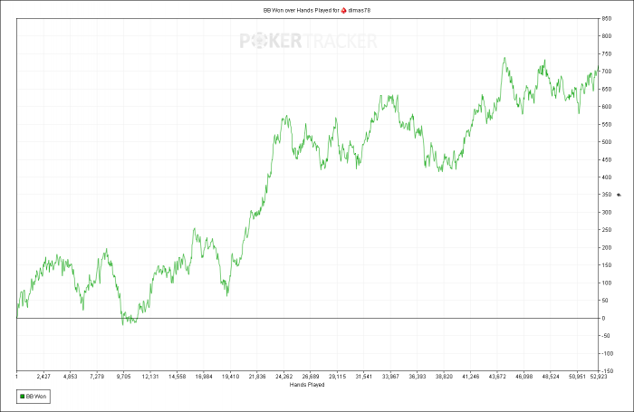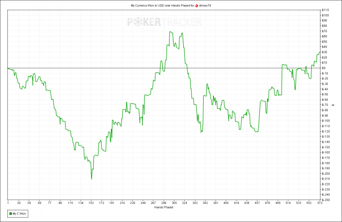 Это вся омаха хай-лоу без фильтров. В HU в минусе, фулл ринг почти не играл. Февраль, как видно из графика, прошел плохо, прирост слабый даже с учетом рейкбека (которого на графике нет, так как в ПТ4 просто нет такой возможности).