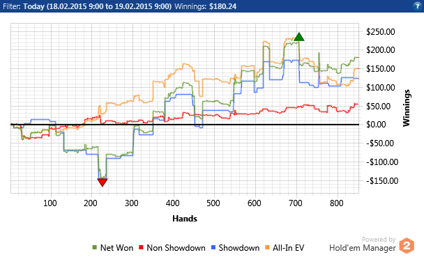 Если честно, результат порадовал. Но больше - собственные ощущение того, что по уровне я стою неплохо относительно поля. Ведь были и реги. Деньги давили немного - Х2 как-никак - но это добавляло концентрации и по-своему хорошо сказалось на игре. Обв, одна сися не дистанция, все дела, но если следующие несколько к рук ев с красной будут такими же, останусь тут, тут поинтереснее, чё скрывать