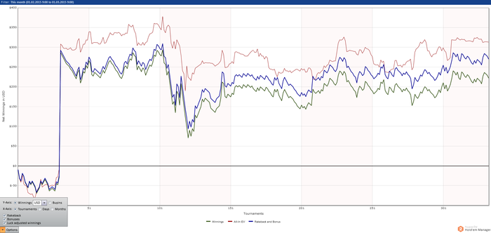 Шутки шутками, но есть еще кое-что. В этом месяце получилось так, что я почти 50/50 отыграл на пло25 и пло50. И вот интересная картина.