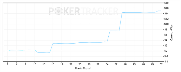 Final Pot: $14.69 Hero shows A A (two pair, Aces and Sixes) BTN shows 8 K (a pair of Sixes) Hero wins $14.19 (Rake: $0.50)