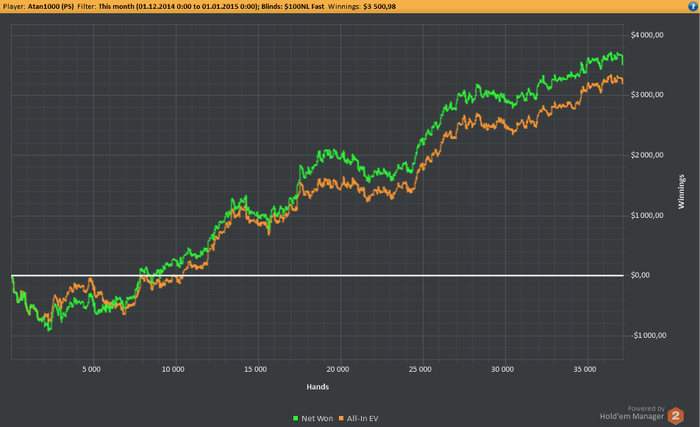 Опять по колличеству рук норму недовыполнил. Это не есть гуд. Игра конечно оставляет желать лучшего, но всё же прогресс идёт, по чуть-чуть, но движемся в верном направление. Буду работать еще больше и тогда всё будет хорошо. Не унываем и продалжаем катать и работать над своей игрой. Всем удачи и хороших риверов.
